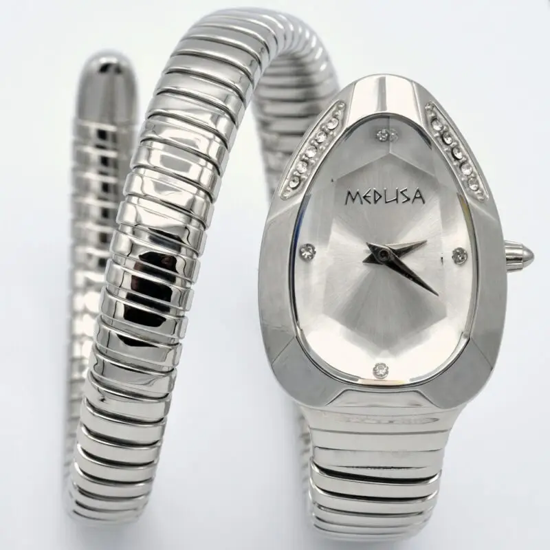 The MEDUSA Snake Spirit features a fluid, wrap-around stainless steel bracelet designed to contour perfectly to your wrist. A seamless blend of ancient symbolism and contemporary precision, crafted for those who demand elegance in every movement.