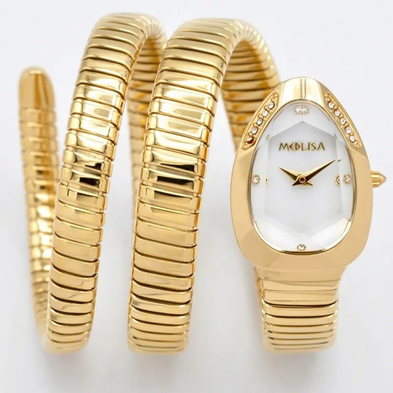 Artistic & Bold: Coiled Elegance: The Medusa Two-Tone Serpent Watch with Geometric Pearl & Diamond Face