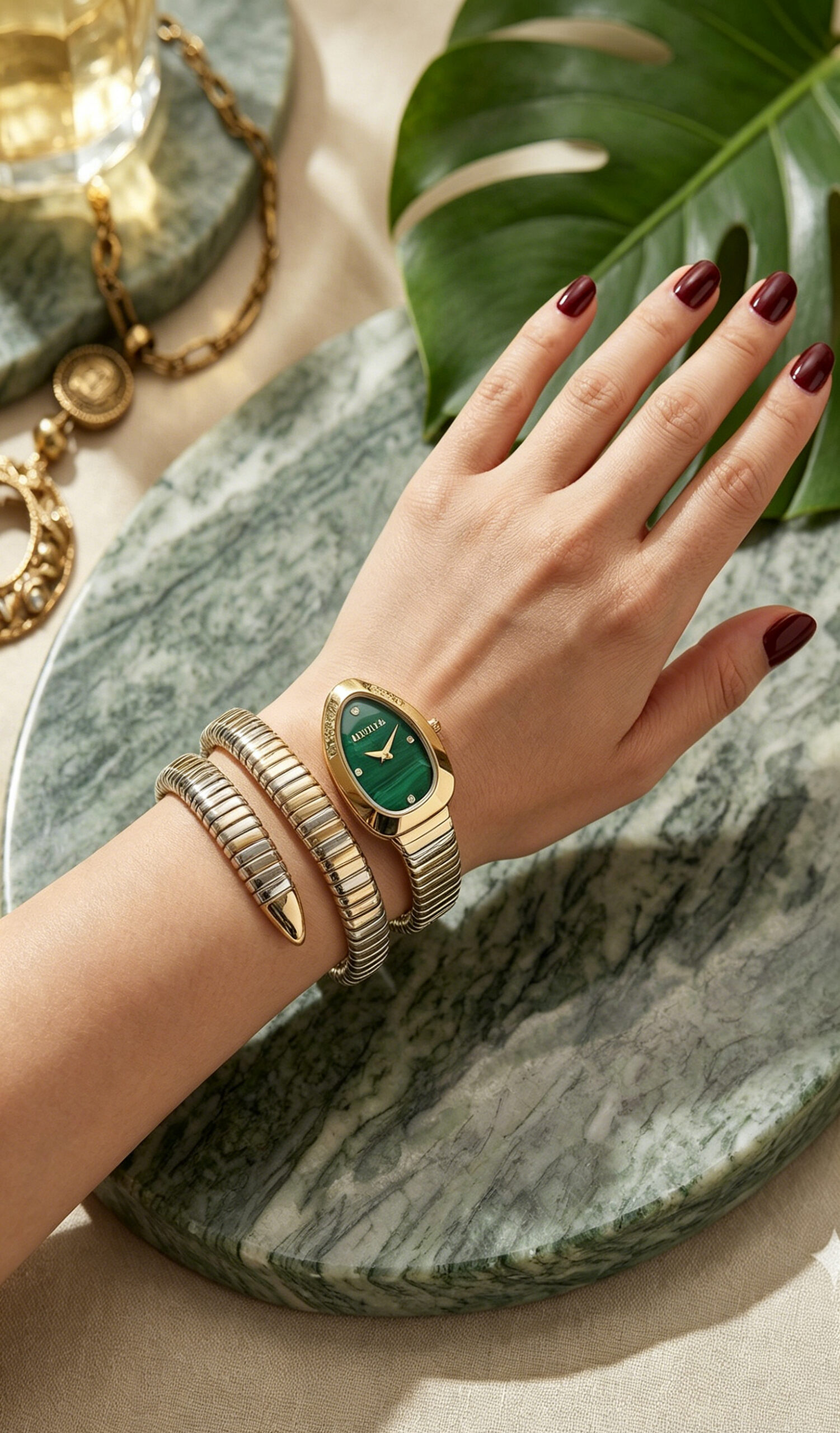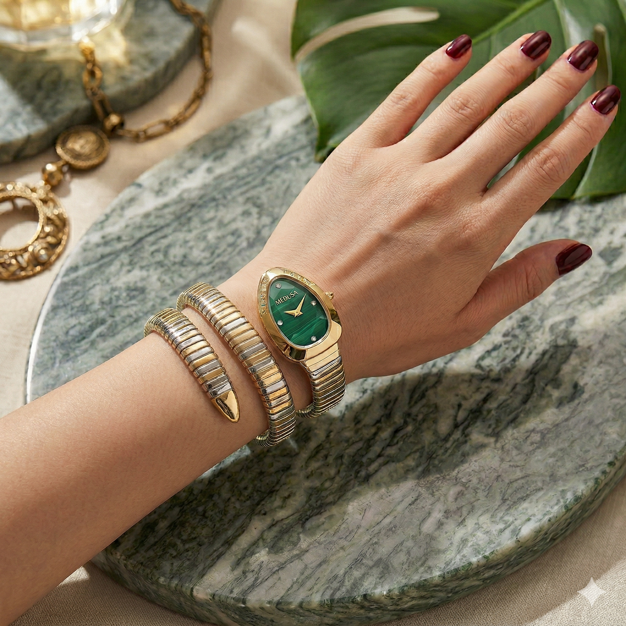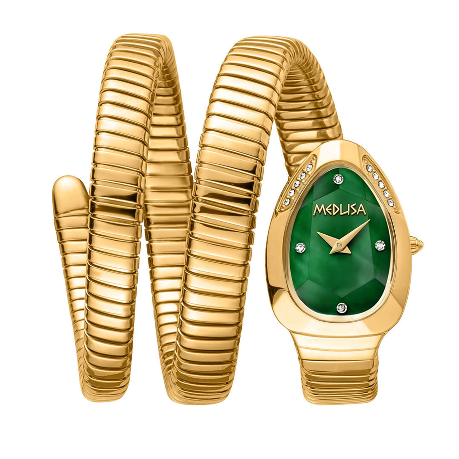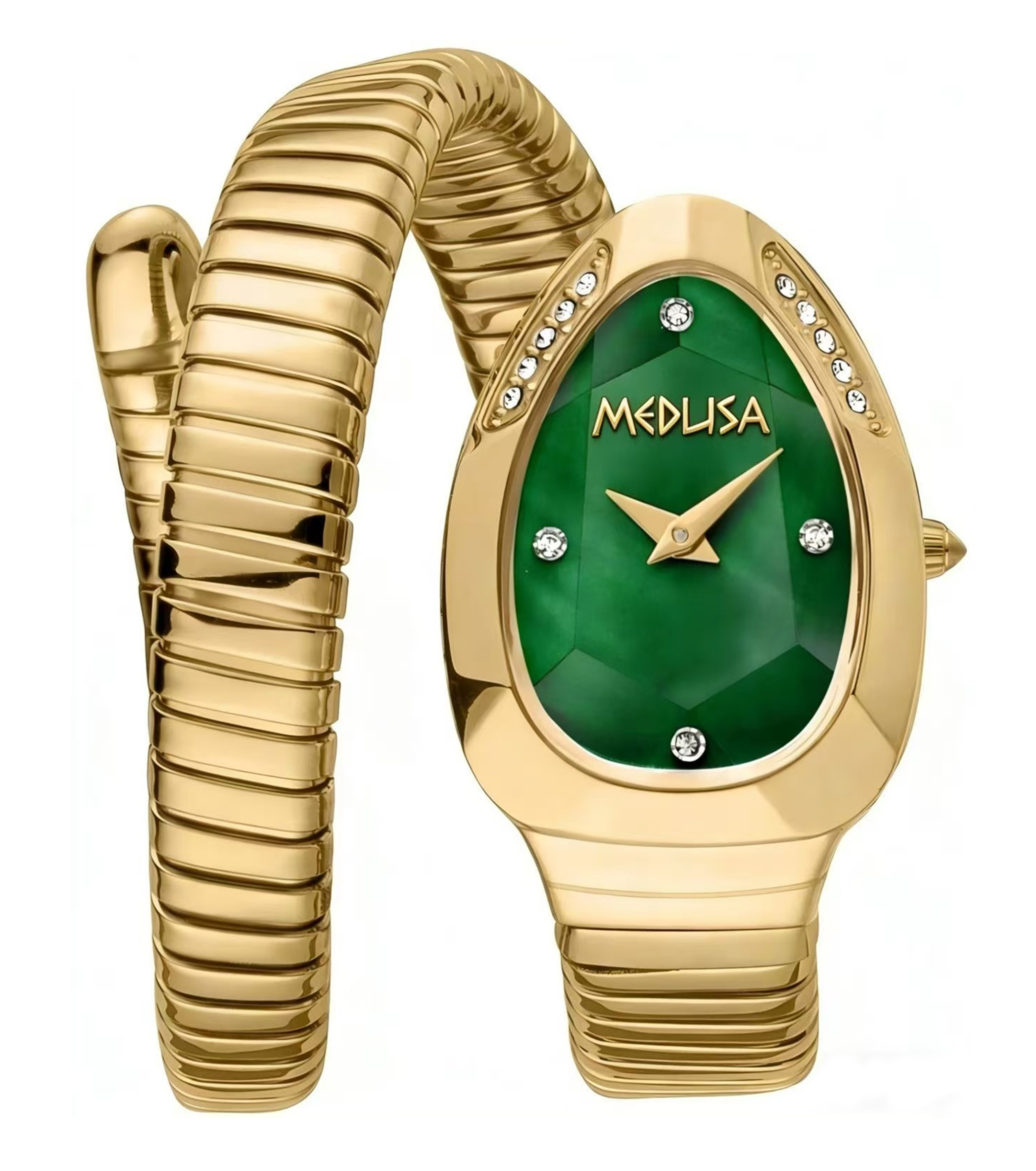 Luxury & Elegant: MEDUSA Serpentis Collection | Two-Tone Emerald Green Snake Wrap Watch